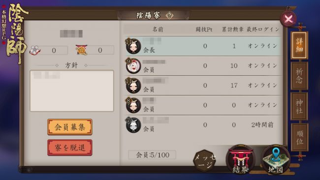 陰陽寮は他のプレイヤーからマップ上でも閲覧が可能となっており、検索して入隊申請をする他にもマップ上から近くの陰陽寮に申請を行うなども可能となっています。