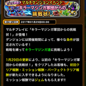 以前に行われた「キラーマジンガ軍団からの挑戦状!」をクリアしたユーザーも、初回クリア報酬、ミッション報酬、パーフェクトクリア報酬が新たに入手できるようになりました。