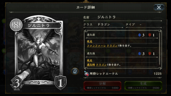 プレイ時&進化時にドラゴンを展開することのできる能力が強力。展開力に乏しいドラゴンでは貴重な能力を持っており、アリーナ(2Pick)では活躍が期待できます。