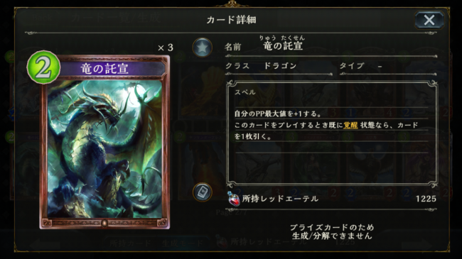 ドラゴンの特徴でもある覚醒を早く発動させればさせるほど、勝率は高くなっていきます。なので、PP加速効果を持つカードは絶対に確保しておきたいです。