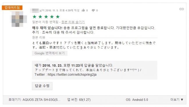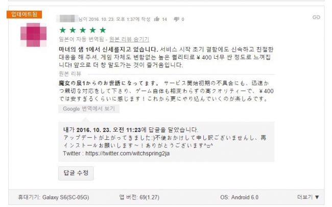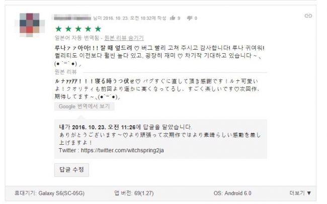 マーケットのレビュー評価に厳しいイメージですが、不具合などをユーザーに報告もらって、アップデートで直すとマーケットの★を上げてくれるのでとても素敵なマナーだと思います。