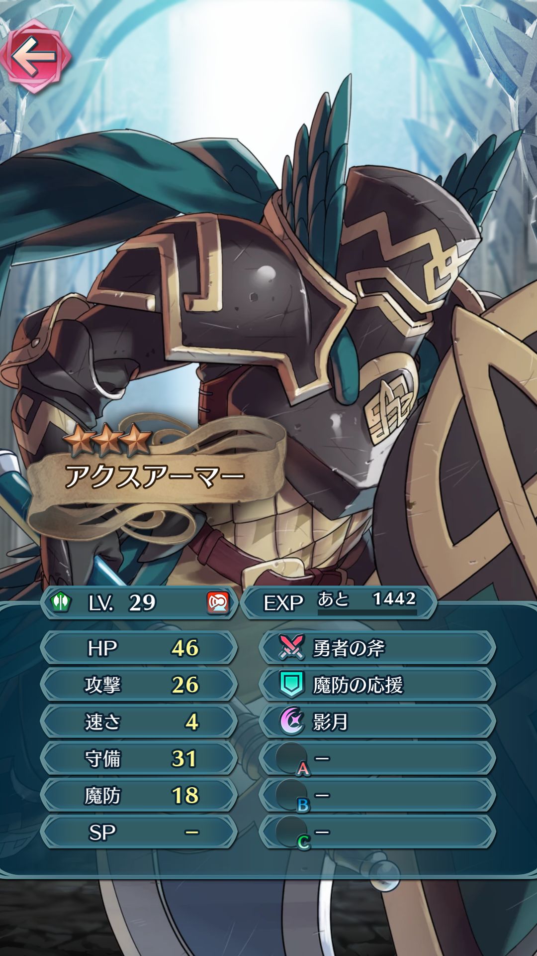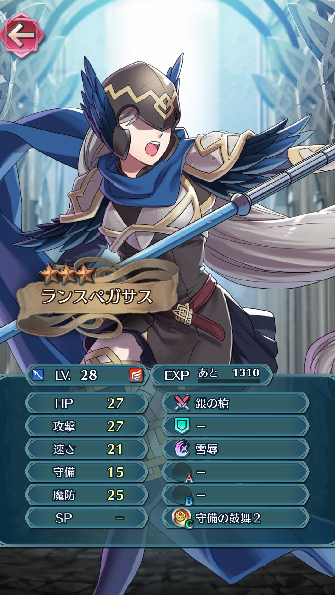 高い攻防の反面、魔防と速さが低いので魔法攻撃で攻める、あるいは重装特攻を持つユニットと対峙させるのがオススメです。