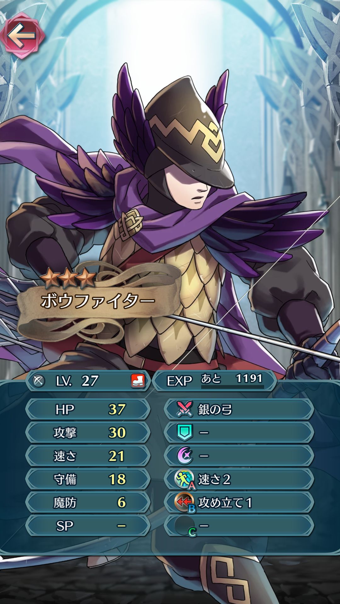 斧・飛行というタイプ、所持スキルの傾向はまさに槍キラー。3すくみ有利だと攻撃力がアップする武器や槍殺しのおかげで高いダメージを与えられます。