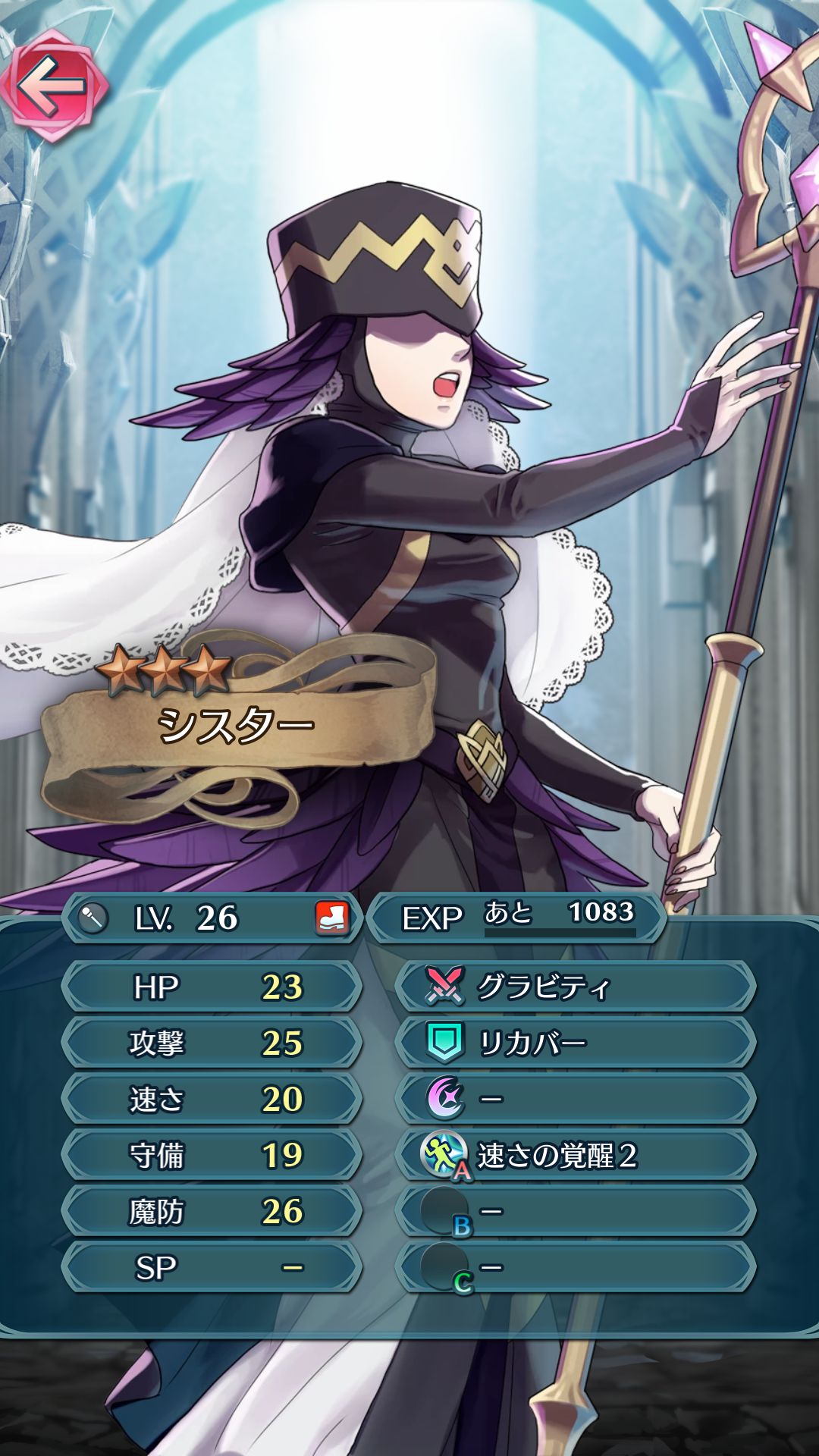 HP回復や補助魔法を得意とする僧侶タイプ。移動力は歩行で2、騎馬で3となります。