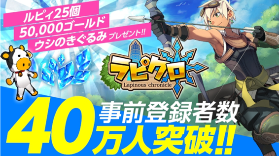 株式会社 Aimingは、 スマートフォン(iOS/Android)向け新作RPG『ラピクロ(ラピナスクロニクル)』の事前登録者数が40万人を突破したと発表した。