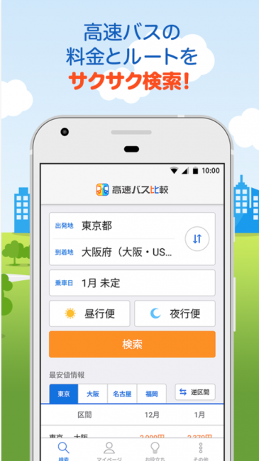 スマホで簡単にバスが探せる「高速バス比較」。オススメです!