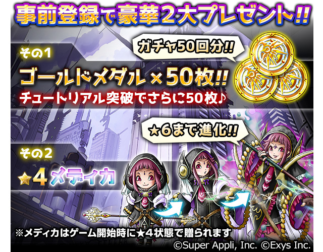 「★4 メディカ」プレゼント!メディカは、最高レアリティ★6 まで進化できる貴重なキャラクターです。