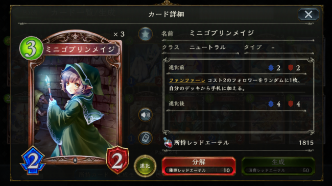 この変更を行うことで、「アドバンテージが取れるカード」としての性能はそのままに、デッキ作成時の工夫によってサーチカードとして使うこともでき、エルフの一強デッキにならないように、ミニゴブリンメイジの能力を変更したようです。