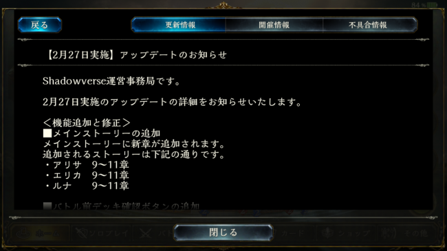 ストーリーの追加やカードの弱体化などが行われます。