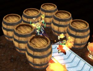 逆流するコンベアー先にあるタルは、物理攻撃ではなかなか壊せないほど頑丈。