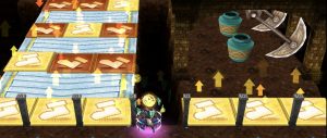 移動速度がDOWNする床、ダメージ床、進行方向と逆流するベルトコンベアー、毒効果のある水晶石、回転式ハンマーなど、ありとあらゆるトラップが仕掛けられている。