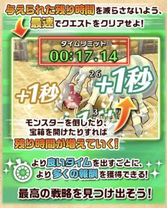 持ち時間が減算されるトラップや敵の攻撃などを回避しつつ、逆に敵や宝箱などを処理・回収して持ち時間を加算させながら進めるのが効率良く進める秘訣だ!!