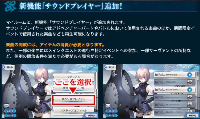 ゲーム内の楽曲を聴くことができるようになります。