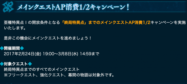 メインクエストAP消費1/2キャンペーン