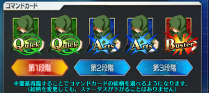 コマンドカードの構成はバランス型となっています。彼の真骨頂は宝具にあり!といっても過言でないため、宝具の回転率が高められるこの構成はありがたいですね。