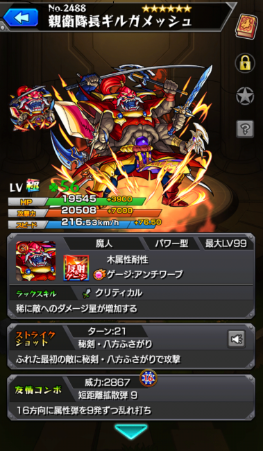 魔人/ パワー型/HP19545+3900/ 攻撃力20508+7000/スピード216.53+76.50