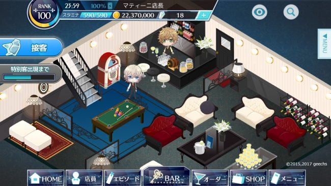 ゲームは、バーの内装や装飾を自分好みにカスタマイズし、売上やオーナーランクを上げることができる「バー経営(ハコニワ)パート」、ミニゲームがプレイできる「接客ゲームパート」、メインエピソードと店員別エピソードを楽しむことができる「ストーリーパート」の3パート構成のシステムです。