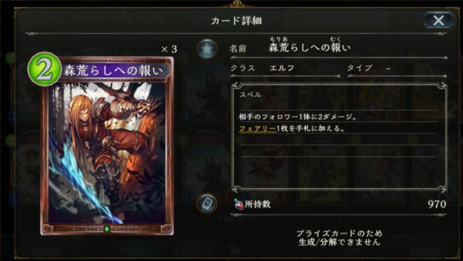 説明は不要。エルフの代名詞とも言えるフォロワーですね。どちらかといえばこのカードこそナーフされるのでは?と思えるほど強力なカードです。