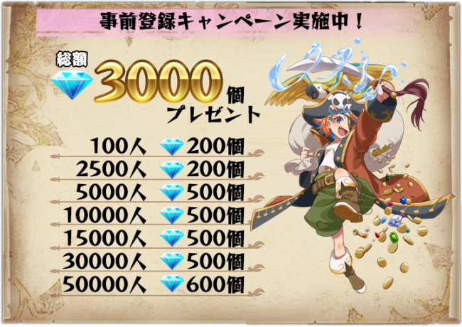 事前登録者 30,000 人突破でダイヤ 500 個