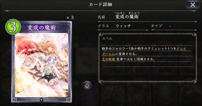 効果:相手のフォロワー1体か相手のアミュレット1つをクレイゴーレムに変身させる。