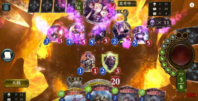 この時点での体力は、ネクロ14点、スパルタ軍20点。