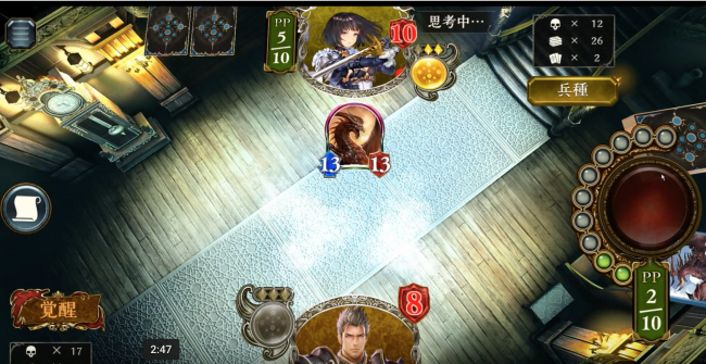 お互いの手札にカードが加わるたび、そのカードのコストは半分(端数切り上げ)になる。