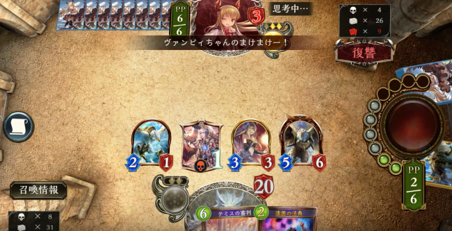 マリガンは、コスト通り「詠唱:白翼への祈り」「詠唱:獣姫の呼び声」「僧侶の鉄槌」。