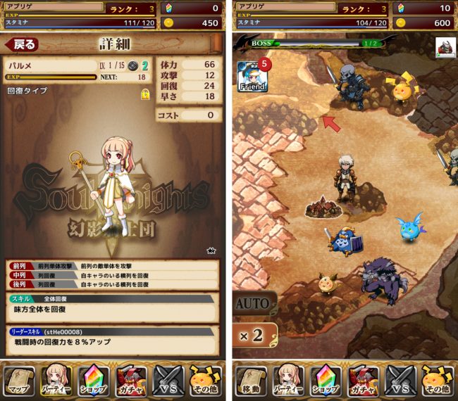 作品を知らないという人は下記プレイレビューを見てね。どちらも大いに遊ぶ価値があります。(ソウルナイツは3月30日でサービス終了予定)