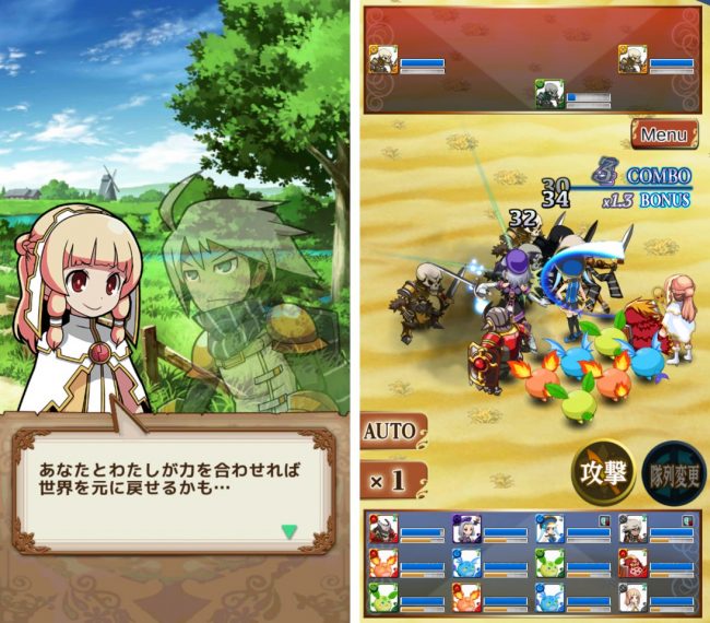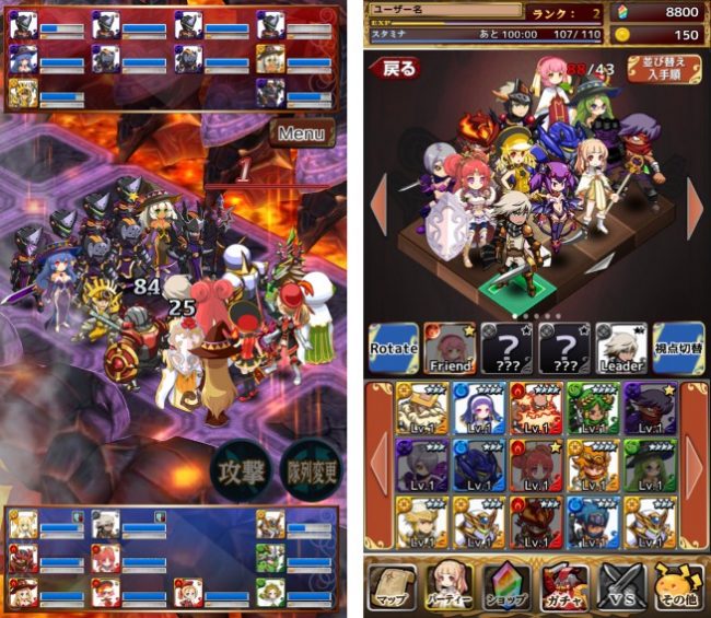 4×3のマス目へあらかじめユニットを配置、戦闘はターン制でほぼオート進行。掛け声ボイス付き。