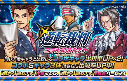 コラボガチャで手に入る、逆転裁判キャラの進化素材がゲットできます。