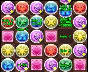 - 1.75(消したドロップ数の倍率)*1.4(属性強化の倍率)=2.45倍