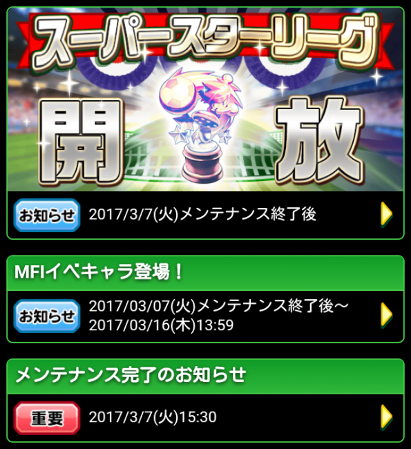 Source: 【パワサカ】3月7日の最新ニュース:MFIイベキャラ登場!・スーパースターリーグ開放・追加シナリオなど盛り沢山!