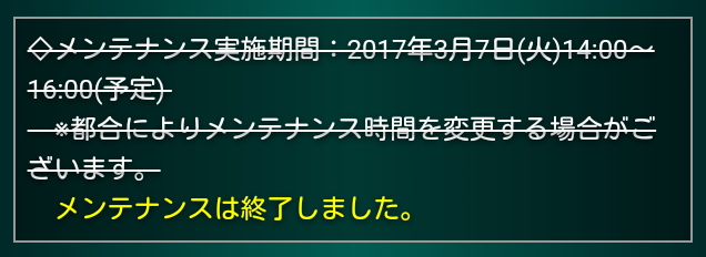 メンテナンス完了のお知らせ