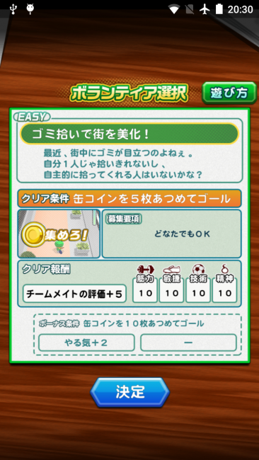 ボランティアは、通常のイベント風に進んでいくものと、缶コインを集めながらゴールへ向かうミニゲームがあります。