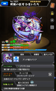 降臨モンスターの中でも脅威のステータスを誇り、進化前のステータスも高いので進化前の状態だと星5制限クエストに連れていけるほど。 攻撃力が高いので火属性相手にはSSで火力が出せます。 乱打SSなので敵の弱点にヒットさせましょう。