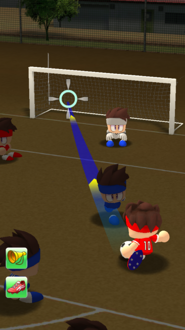 動かすと同時に再び時間が流れますが、収束していくリングとシュートカーソルが重なったときに指を離すと、強いボールが蹴れます。