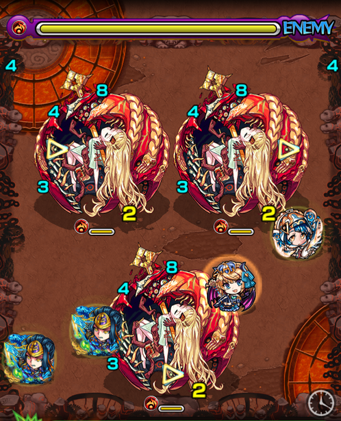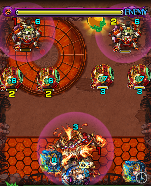 このステージに出てくる敵はドナテッロ以外の全員が即死級の攻撃を持っています。敵の即死攻撃まであと何ターンあるのかをしっかりと頭に入れ、場合によっては敵を倒す順番に優先順位を付けることが大切です。