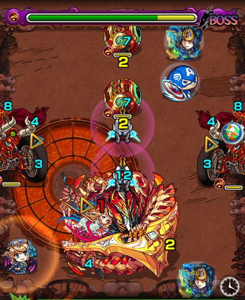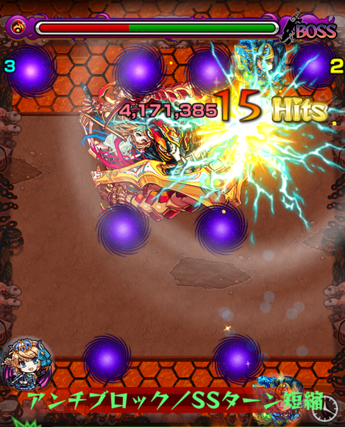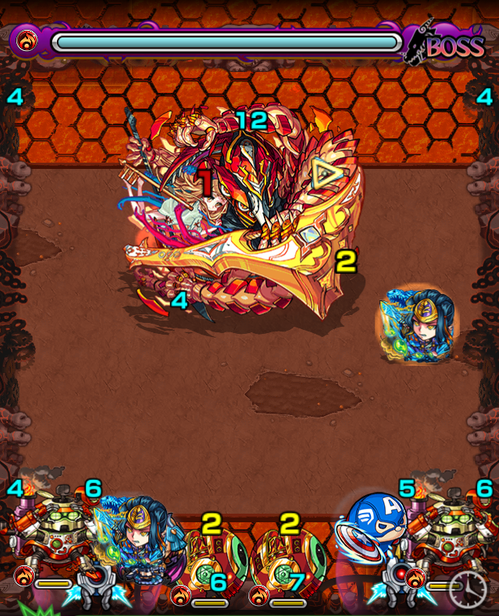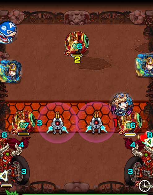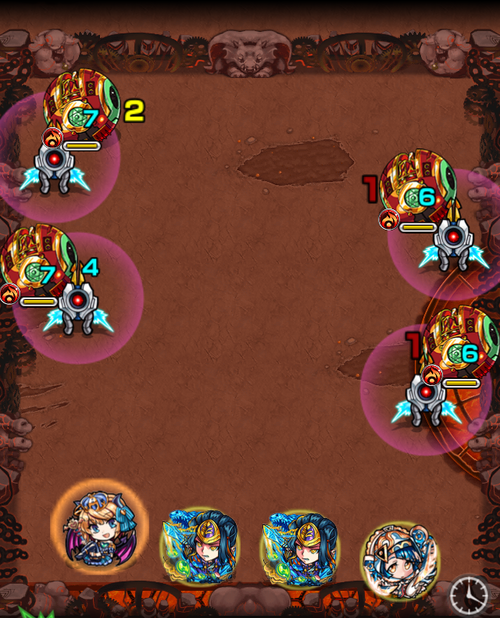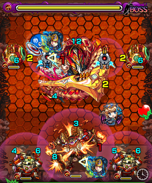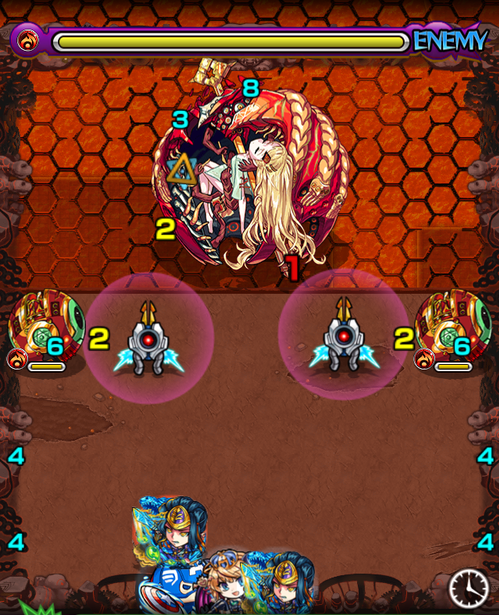 4ターン以内にギャラクシーとビットンを処理し、さらにステージ下部にキャラを置かないように注意しましょう。ステージ下部両端の数字はそれぞれ横方向に1本5000ダメージほどのレーザーを打ってきます。