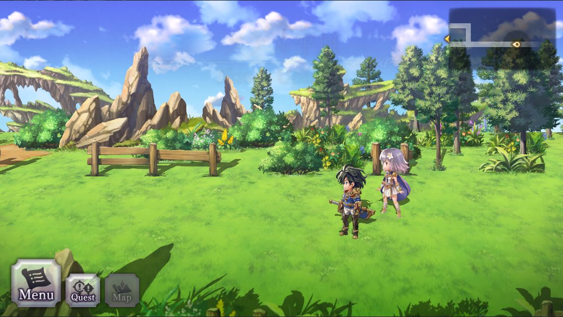 村からフィールドへは地続きになっていて、既存のスマホRPGのようにクエストを選択する必要がありません。