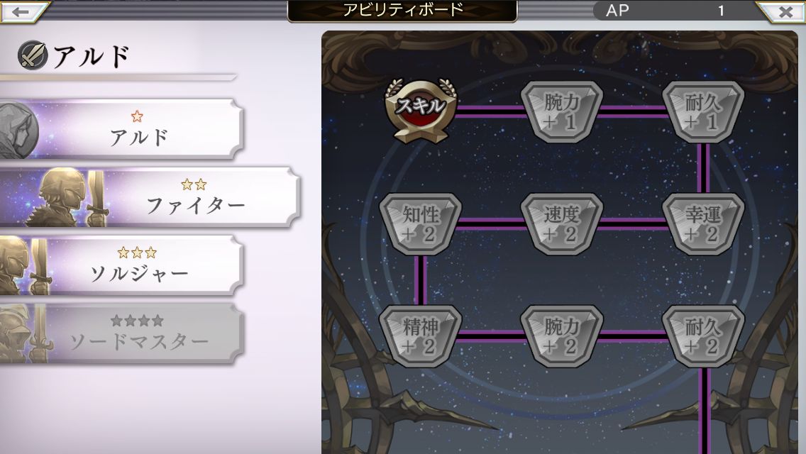 レベルアップ時にAPを獲得でき、アビリティボードではそれを使ってステータスの上昇やスキルの習得が行えるようですね。