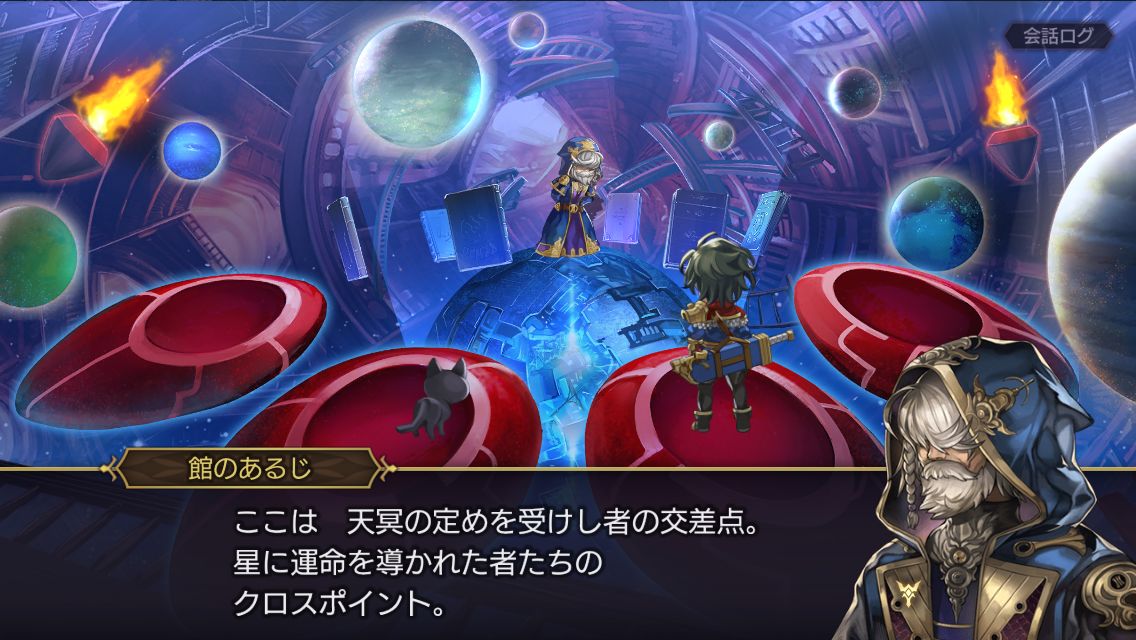村の北にある裂け目からクロスポイント「星の夢見館」へ。ここでは、特殊通貨であるクロノスの石を使ったキャラクターガチャを利用できます。