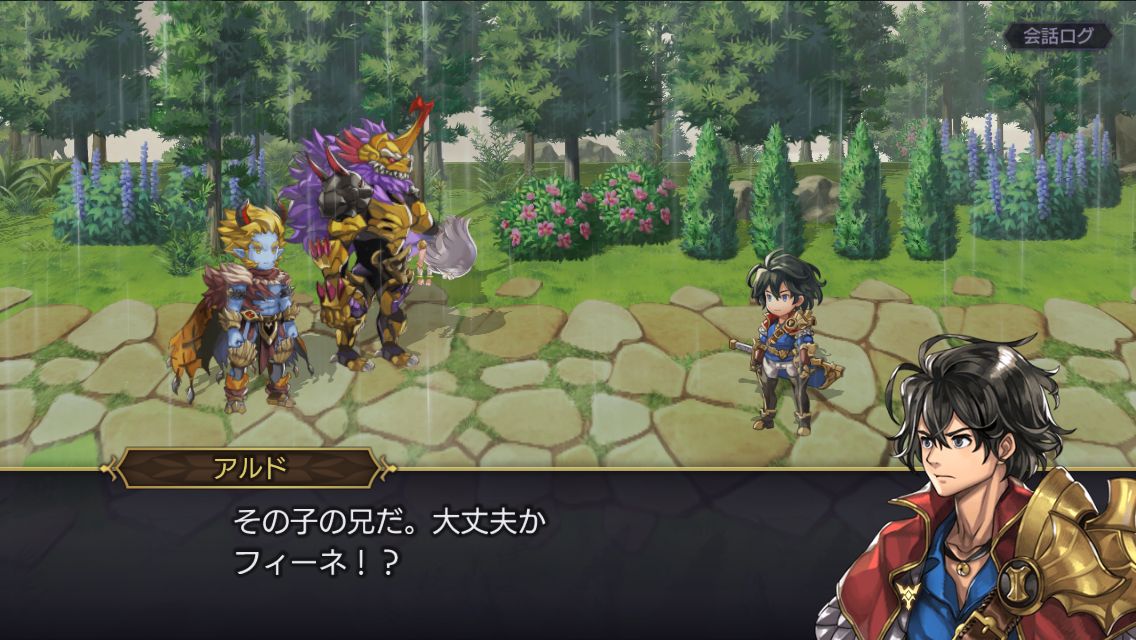 赤ん坊は「フィーネ」と名付けられ、傍らにいた兄は「アルド」と名乗り、村の自警団に所属しているようです。