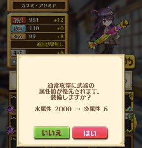 水属性あるいは無属性以外の武器を装備すると、水属性のキャラ属性の属性ダメージ効果が帳消しになってしまう…。