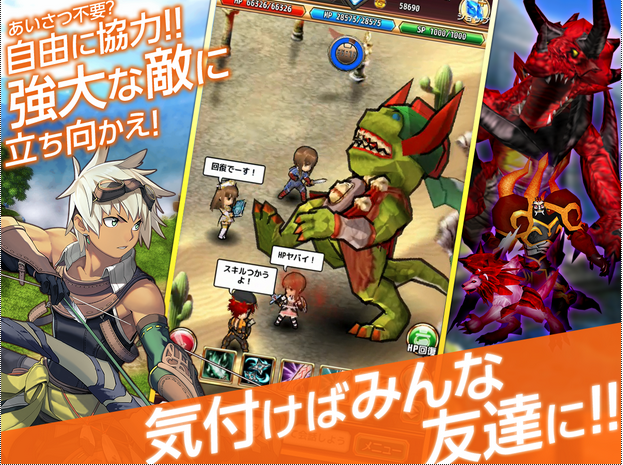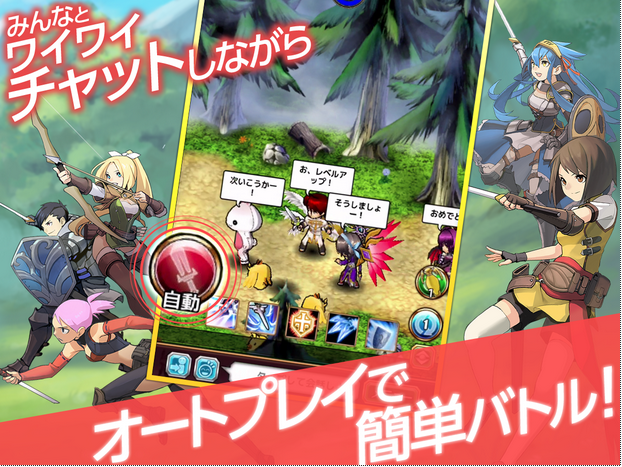 切り替え自由のオート戦闘で、移動中の操作やクエスト中のチャットなど、仲間とらくらくコミュニケ―ションを取ることができます。