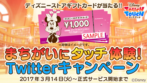 キャンペーンサイトから、「EASYモード」「VERY HARDモード」にチャレンジし、各モードですべての間違いを見つけてツイートすると、抽選で「ディズニーストアギフトカード」をプレゼントいたします。