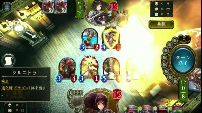 「ジルニトラ」を進化させて「ドラゴン」を二体場に出して圧力をかけていきます。