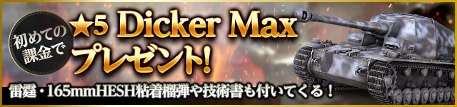 初めてジェムを購入すると、ボーナスジェムに加え、星5 Dicker Maxや165mmHESH粘着榴弾をプレゼントします。