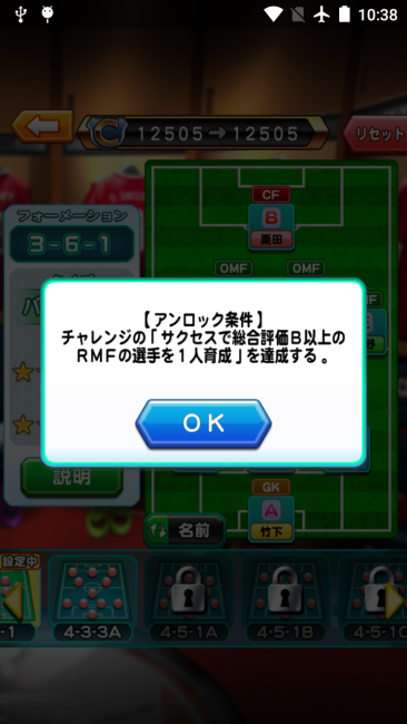 アンロック条件:チャレンジの「サクセスで総合評価B以上のRMFの選手を1人育成」を達成する。