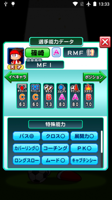 オフェンスなどの6つの項目すべてがB以上でなくても、獲得している特殊能力が多ければ総合評価が高くなります。