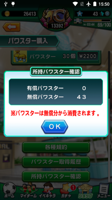 パワスターの使い方は、無償も有償も基本的には同じです。どちらも持っている場合は、無償パワスターのほうから消費されます。
